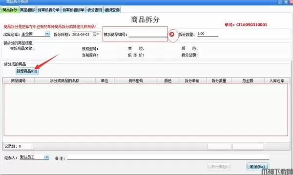 用户在库存管理页面点击拆分捆绑图标即可进入商品拆分页面,可以把仓库内已有的商品拆分为其他几种商品