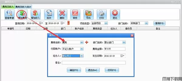 用户在统计管理页面,可以点击费用及收入,查看所有的账户支出和收入