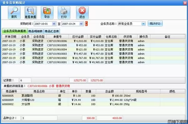 1、业务员采购统计