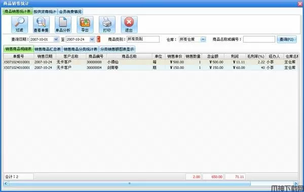 单击“单品分析”按钮可以对分析项目作相应的统计;