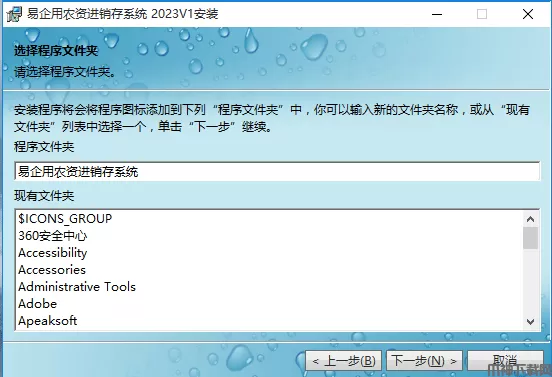 1、双击易企用农资进销存管理软件,运行安装,点击“下一步”;