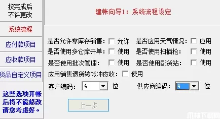 新建成功后,进行初始化设置,根据企业实际情况进行选择;