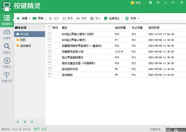 您可以新建或录制脚本,哪怕不懂代码也能直接点击使用脚本精灵里的命令来制作脚本或是直接使用录制功能录制键鼠的轨迹和使用,没有专业基础也能学会。选择勾选有效的脚本,通过设置热键,您可以随时一键运行和停止脚本,省心省力。