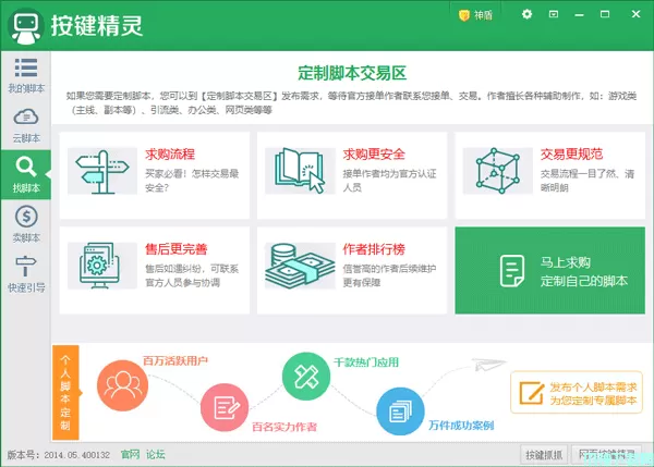 按键精灵商业版是一款能够模拟键鼠动作的脚本软件,通过制作并使用脚本,可以让软件来代替您进行一系列的动作行为,解放您的双手。这次为大家带来的新版本增强了多开功能、添加了浏览器控件等新控件,现在您可通过它来制作控件对使用中的浏览器的功能进行加强。同时它优化了功能模块、新增了表格控件和浏览器控件,让您制作脚本的范围得到了一个全新的选项。而且它不像编程软件那样需要专业的技巧,只要有着优秀的逻辑思路就能通过点击动作命令制作一个成熟的脚本,至于代码方面,则就交给按键精灵帮你解决。至于按键精灵商业版和普通版的区别,商业版拥有普通版所有的功能和特点,不过官方为了给大家一个公平的脚步买卖平台而另做的一个版本,如果你觉得自己的脚步做的不错,可以直接通过商业版进行买卖。