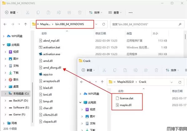 7、此时,先将补丁文件“maple.dll”复制到软件安装目录下进行替换