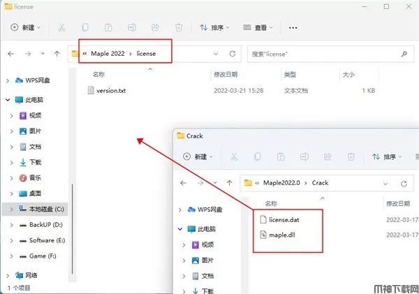 1、从本站下载解压后,即可得到Maple源程序和补丁文件