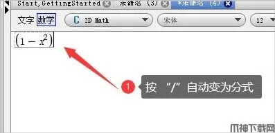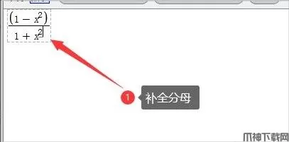 3、输入(1-x^2),按“/”键会发现自动为分子,再输入1+x^2变为分母