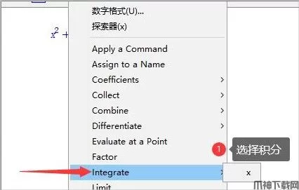 5、再在输出结果中右击选择选项,例如选择积分integrate