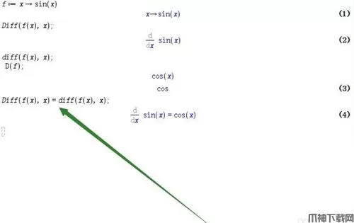 5、如果要输出一个完整的求导公式,就这样:Diff(f(x),x)=diff(f(x),x)