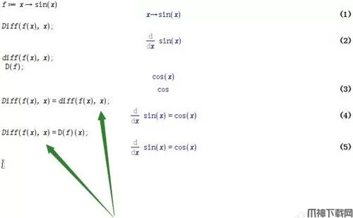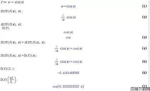 6、还可以这样:Diff(f(x),x)=D(f)(x)