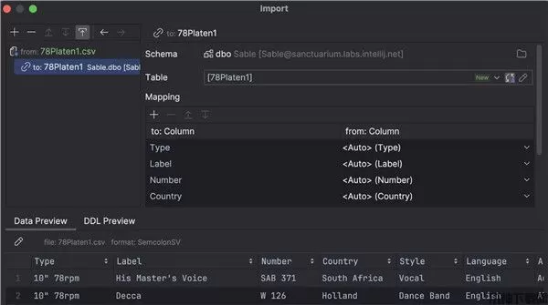 默认目标实体称为映射。 在这里,您可以定义目标表,并通过目标表的列映射文件列。 如需编辑表本身,请点击 Edit(编辑)按钮: