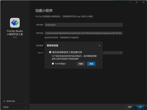 项目打开前,会提示使用兼容性检查工具对小程序进行检查,下面会对该功能进行详细介绍。