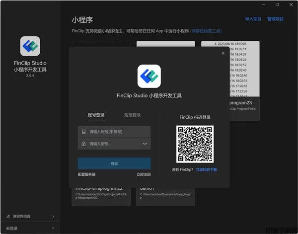 FinClip Studio 支持多种登录方式,账号登录、短信登录、FinClip 扫码登录