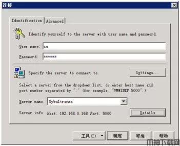 5、然后,在登录信息窗口中,点确定,连接上Sybultranms数据库。