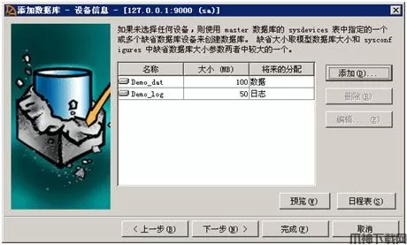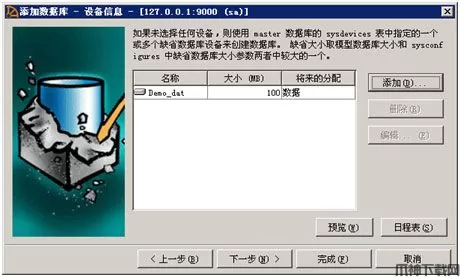 8、如上图示,为数据库Demo分配好了数据设备和日志设备。 点 下一步 按钮