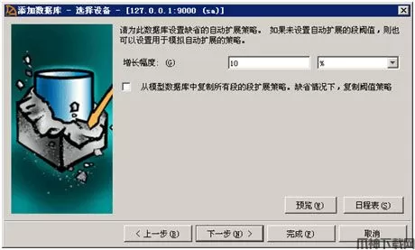 11、数据库的自动增长配置可以通过job scheduler来完成。此时,不配置数据库Demo的自动增长。点下一步,继续