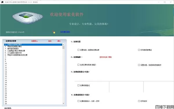 2、软件适用于以下比赛项目,具有自动生成比赛对阵表、自动设置日程等信息和对比赛成绩进行智能管理功能,可以有效实现比赛的信息化管理。