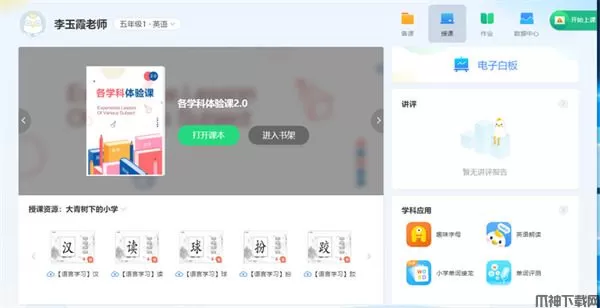 2、进入软件后你便可以选择自己所教学的课程进行下载课本,继而更好的备课、上课。