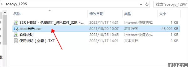 1、下载本站提供的压缩包,解压打开,找到soso音乐.exe文件,运行它。