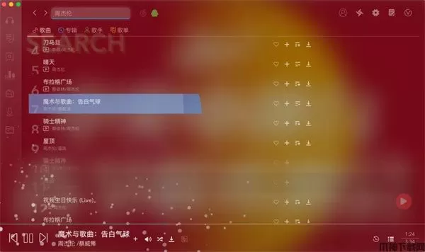 4、想听什么音乐直接在搜索框中搜索,比如搜索周董的音乐,搜索的时候我们可以自行切换搜索平台。周董的音乐在各大平台都是收费的,在这里我们随意试听和下载。