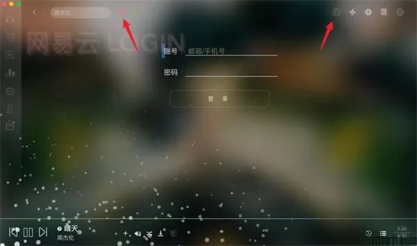 6、支不支持导入音乐歌单,点击软件右上角用户图标,然后点击搜索框旁边的网抑云图标,然后输入信息登录即可。