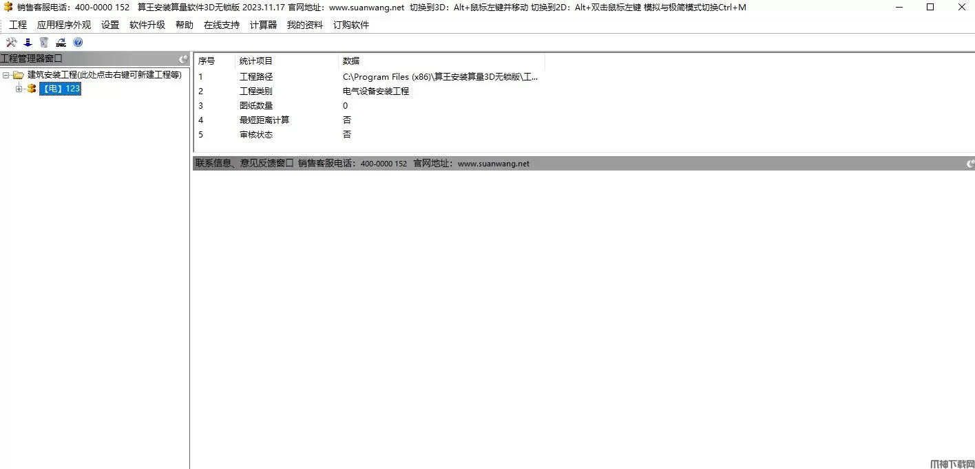 算王安装算量无锁版官方版是一款专业强大的安装工程量计算软件,该软件针对广大工程建筑的使用需要,提供强大的计算功能,具有完整的模块功能,包括电气工程、消防工程、给排水工程和暖通工程,可全面计算安装工程构件数量,且计算出的数据出处明确,计算结构与图形关联,可变用户核量对量。除此之外,这款软件具有界面简洁、操作简单灵活、易学易用、算量速度快等特点,完全符合安装造价人员的手算习惯,不会出现丢项落项的情况。与此同时,算王安装算量无锁版以手工算量思路开发,让用户可以不安装CAD就可以导入图纸进行算量,稍懂电脑的使用者不需要培训也可以使用软件进行简单的算量操作,快速算量功能看过视频教程基本都能学会。