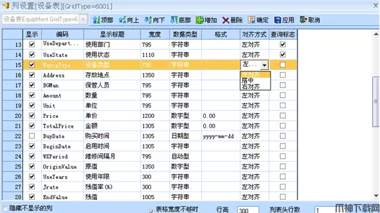 对齐方式:对齐方式分为左对齐、右对齐、居中,为了界面美观可自行选择每个字段的对齐方式;