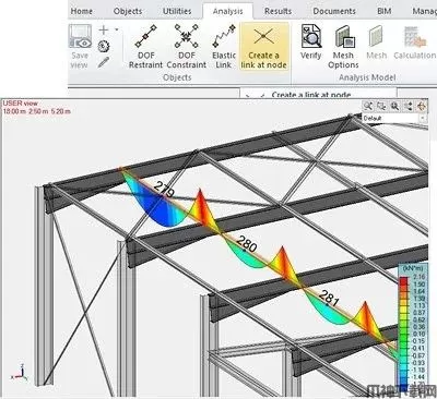 从 Advance Design 2022 开始,提供了一种新的链接类型:节点链接。它定义在线性元素的交点上,并允许在该点定义线性元素上所选自由度之间的关系。这种类型的链接有许多可能的用途,在对两个线性元素之间的剪刀连接或连续檩条和椽之间的铰链连接进行建模时,它尤其有用。在新链接类型的属性中,我们可以指定其参数,从用于定义的坐标系(全局或局部)开始。对于局部坐标系,考虑主要元素的局部坐标系。接下来,我们可以为每个自由度选择元素之间在一点上的连接方法:刚性、弹性或自由。