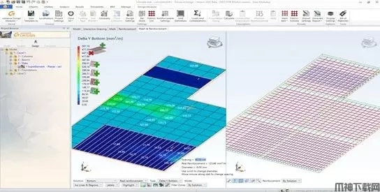 借助 Advance Design 2022,现在可以在新的RC Slab 模块中设计混凝土板。这个新的RC Slab 模块带来了丰富的新功能。可以使用条带法生成理论钢筋,根据理论钢筋生成真实钢筋的能力以及生成钢筋图纸和文档的附加选项。