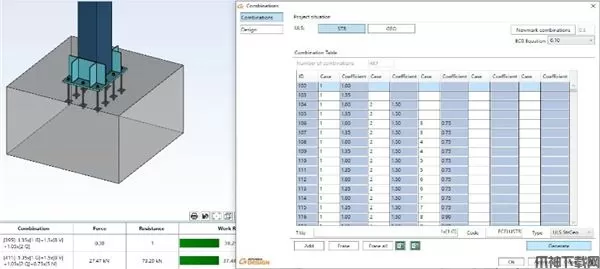 从 2022 版本开始,可以使用所有组合或使用自动确定的组合包络来设计 Steel Connection 模块中可用的所有连接。在这种情况下,仅对满足多个包络标准的组合进行连接分析,确保选择为单个验证提供最小/最大力的所有组合。从而大大减少了更多组合的计算时间。