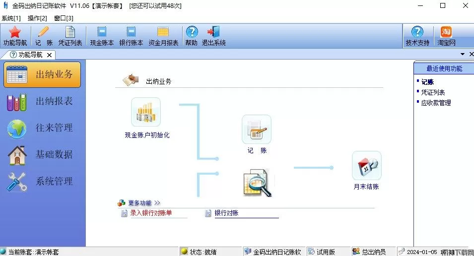 1、结构清晰: 国内首创树形菜单+导航图,界面清爽怡人,正如用户所说金码出纳软件“结构清晰,用着很舒服、很轻松”。