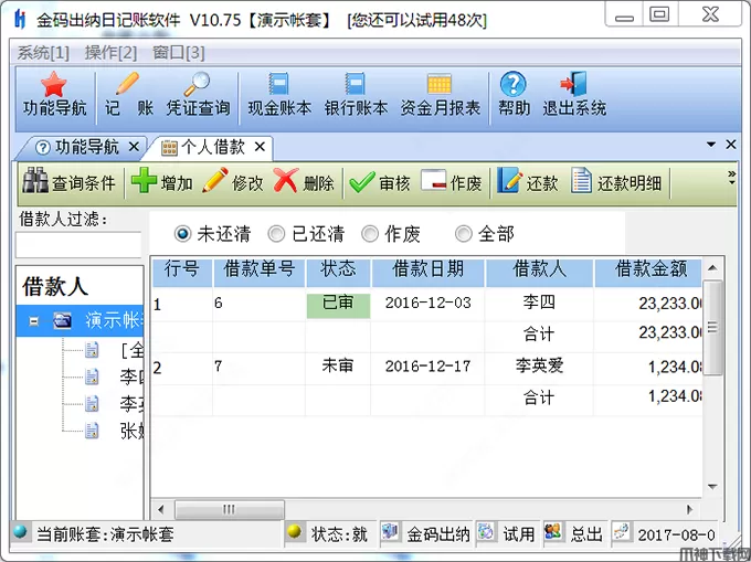 2、自动生成个人借款明细账,同类出纳软件无此功能。