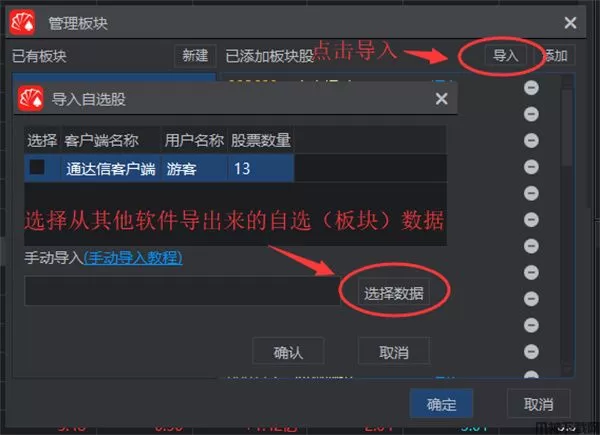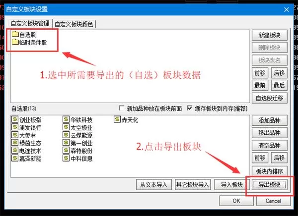 2、将自选数据手动导入远航版自选股(板块股)