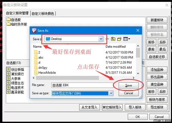 1、导出你所需要导入远航版的自选股(板块股)数据