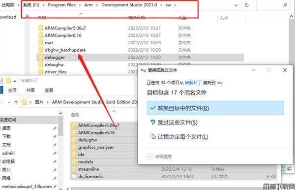 1、大家需要下载解压,然后会得到ARM Development Studio安装包和补丁;