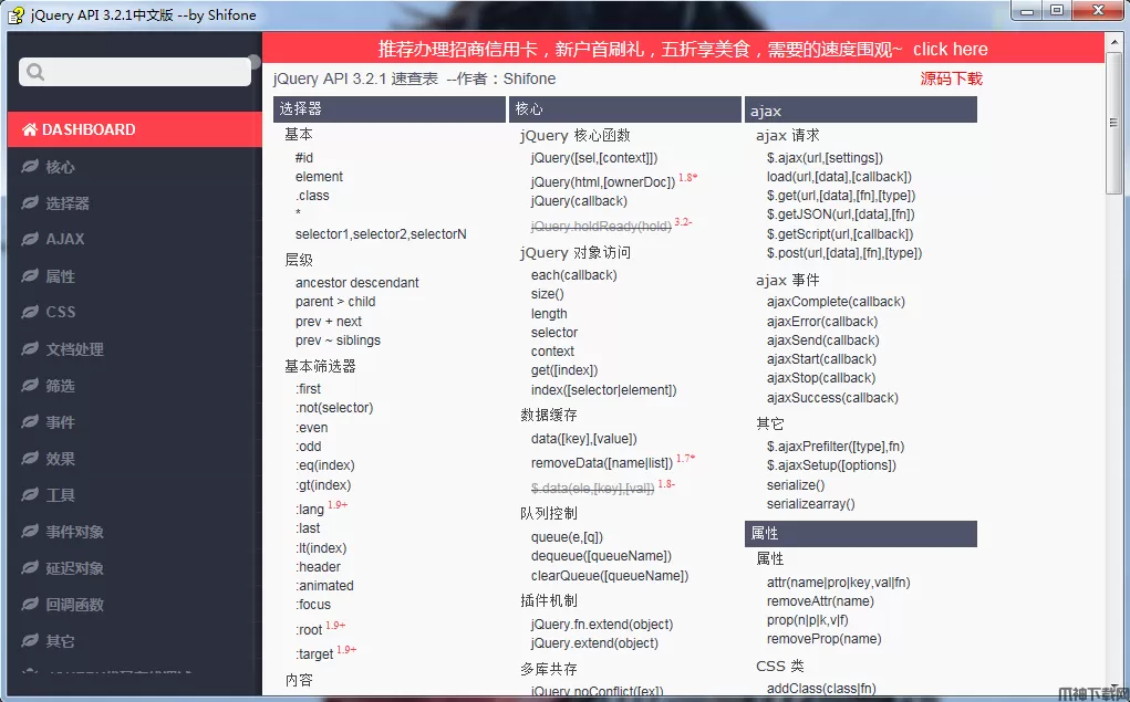 jquery api是一个专门对jQuery进行说明帮助的文档。