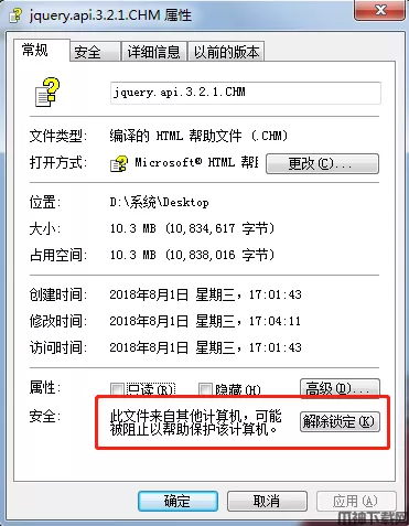 单击“取消阻止”或者选“解除锁定”。然后选择“应用”,单击确定即可解决。