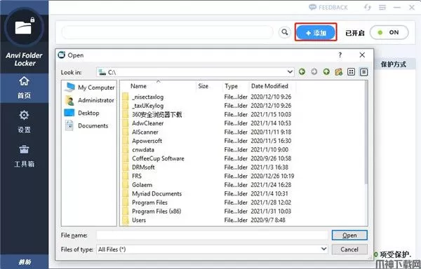 1、Anvi Folder Locker免费版可以增加想要保护的文件或文件夹,可以方便地增加文件,删除与修改权限