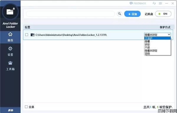 5、也可以随时开启或停止Anvi Folder Locker免费版的保护,或者给它设置一个密码