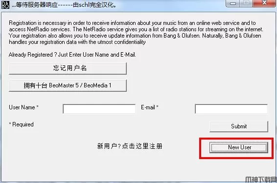 打开“BeoPlayer.exe”然后点击“new user”即可进行注册,内容随意填写,注意星号一定要填写
