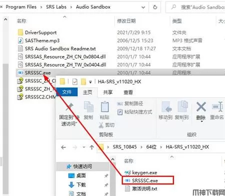 5、接着,将HA-SRS_v11020_HX文件夹下的“SRSSSC.exe”文件复制到软件安装目录中进行替换