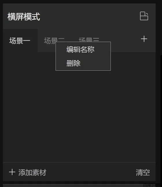 一个场景可以包含若干个素材,用户可以在多个场景进行切换。