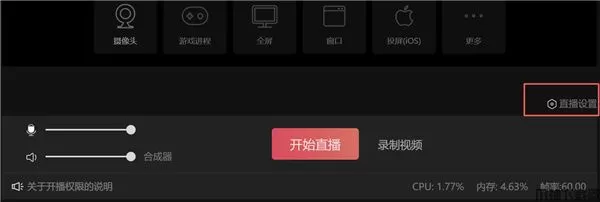 点击开播按钮右上方的“直播设置”可以进入直播设置页面。