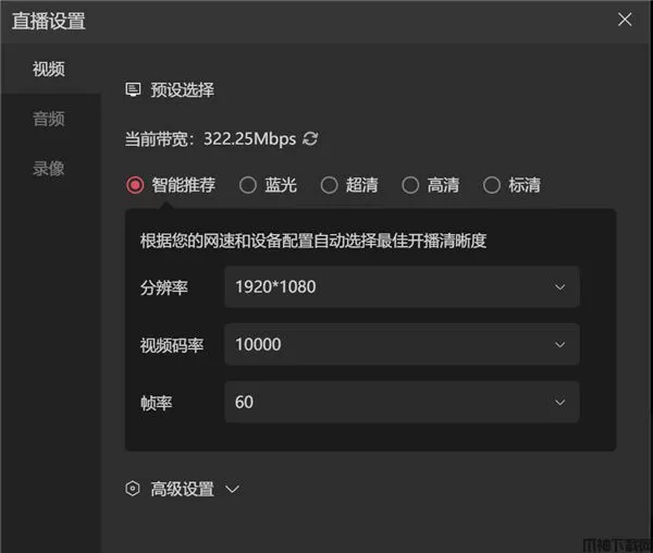 1、可根据测速的结果智能推荐设置(测速时长大约1分钟),也可以自定义视频设置。