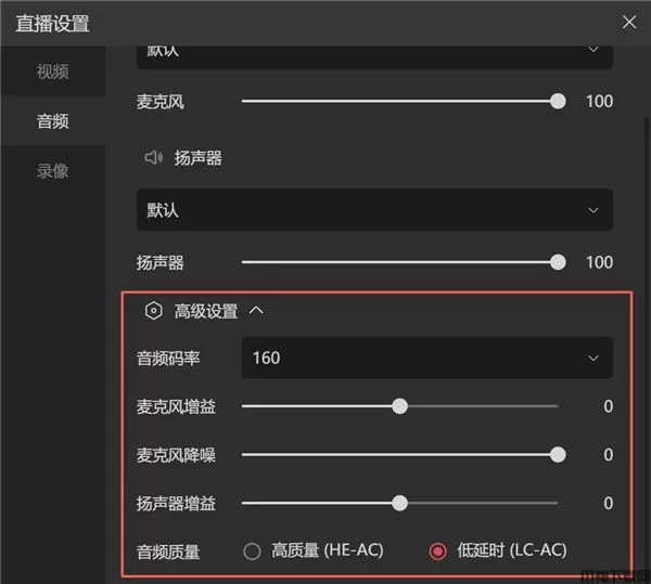 3、点击”高级设置“可以设置麦克风的降噪等。