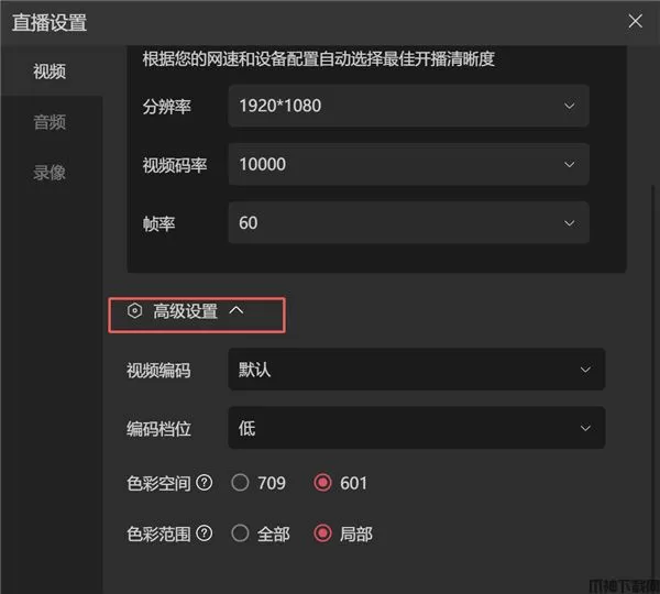 2、点开”高级设置“,可设置视频编码、颜色空间等。