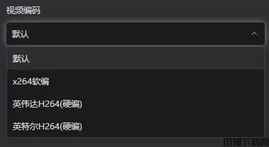 2、视频编码尽量选择硬编方式,可以极大降低电脑负载,如非特殊选择“默认”即可。