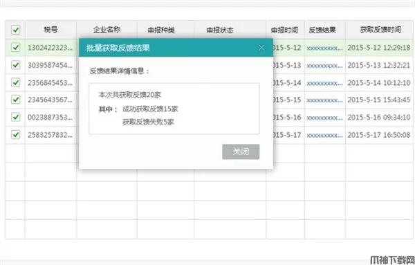 4、点击“批量获取反馈”按钮对所有注册企业进行申报反馈获取。