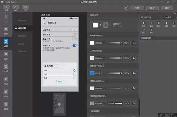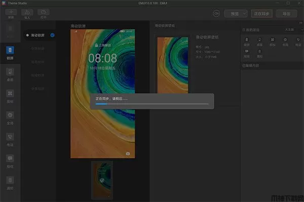所有的模块都制作完成后,将华为手机连接电脑,并打开手机中的USB调试。点击菜单栏中的“同步”,将正在编辑的主题同步至手机中。同步成功后需要在主题App中,选择同步的主题进行应用。