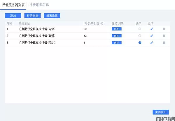 2、手工选择行情服务器站点